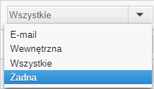 Można włączyć każdy rodzaj notyfikacji przez ustawienie statusu wszystkie, wyłączyć przez ustawienie statusu żadne, ustawić powiadomienie przez E-mail bądź Wewnętrzne na platformie, wyświetlane na indywidualnym dashboardzie.